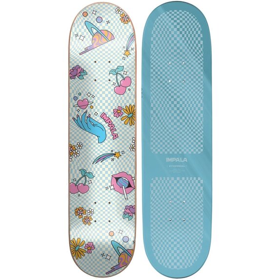 Protože Impala je přední výrobce dvouřadých bruslí, který je známý především díky vzezření svých produktů, firma neukrátila ani své skateboardy od tohoto designového dotyku. Deska se pyšní custom grafikou a různými optickými efekty.