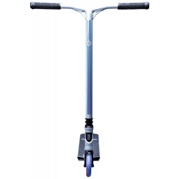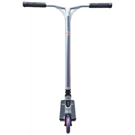 Koloběžka je vyskládaná do neuvěřitelné lehkosti pouhých 3,2kg. Má integrovaný headset, ideální pro triky s řidítky. Desku Cody Flom V3 Signature doplňují hollowcore kolečka také Cody Flom V3 Signature v průměru 110mm. Komplet je doplněn oversized řidítky Kink, která ladí právě do stylu Porsche/Martini.
