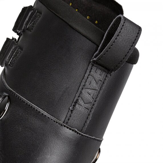 Brusle mají dva odolné kotníkové řemínky na suchý zip a klasické šňůrky. Upevnění paty zajišťuje 45 stupňový suchý zip. Kombinací takového zapínání vzniká výborný pocit, udržuje nohu na místě a zlepšuje se tak kontrola bruslí.