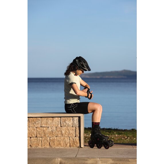 Uvazování bruslí je vyřešeno rychlošněrováním speedlacing SL2 s pojistkou . Měkký úchyt se lehce zatáhne, upevní nohu a následně se snadno dá schovat do sáčku na jazyku. Šňůrky navíc navazují na design svršku bruslí , aby tak bota při zatažení obepla nohu. O pevnost v kotníku se postará hliníková klipsna a patu na místě podrží suchý zip nad nártem.
